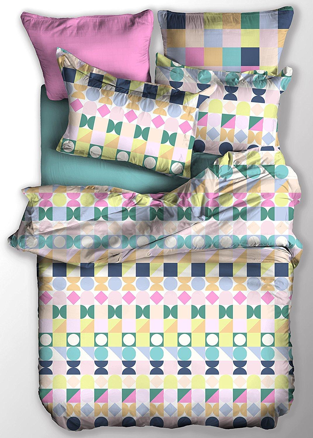 Sengetøj 100% bomuld – 140×200 cm – Blåt sengesæt med harlekintern – Nordstrand Home dynebetræk