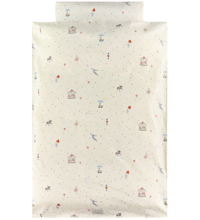 Designet Carousel er inspireret af de klassiske karusseller, der bringer glæde og barndommens uskyld til live. Farverne er bløde og indbydende, med nuancer, der harmonerer perfekt med de fleste børneværelser. Dette gør det ikke blot til en praktisk løsning, men også til en æstetisk tilføjelse, der vil få alle til at smile. Hver lille detalje i designet er skabt med kærlighed og omtanke, hvilket gør sengetøjet til en unik gave til din lille eller en kære veners barn.