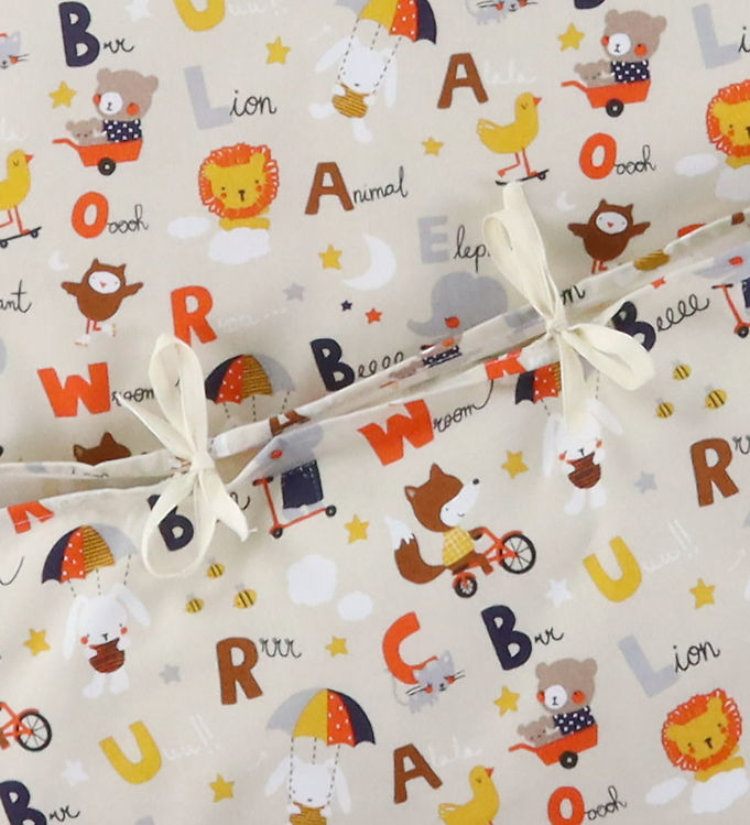 Sengetøjet er prydet med et alfabetmotiv, der både er lærerigt og stimulerende for dit barns sanser. Hvert bogstav fungerer som en hurtig introduktion til alfabetet og kan endda skabe rammen for sjove læringsøjeblikke. Forestil dig at ligge sammen med dit barn og pege på bogstaverne, mens I snakker om ord og lyde. Det er mere end bare sengetøj; det er en del af en læringsrejse, der begynder fra de tidligste dage.