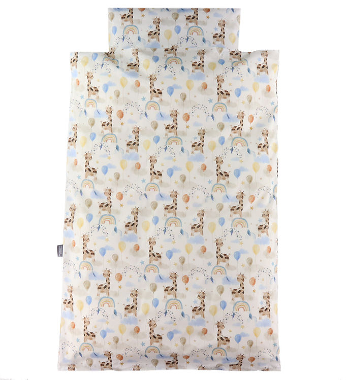 Opdag magien ved drømmenes verden med vores vidunderlige sengetøj fra Nørgaard Madsen, særligt designet til de små. Dette betagende sæt i hvidt med en farverig giraf på regnbuen bringer et strejf af glade nuancer ind i ethvert børneværelse og skaber en hyggelig atmosfære, hvor fantasien kan svæve højt. Den søde giraf, der står stolt på sin regnbue, er ikke bare et design; det er et symbol på leg og livlighed, der inspirerer dit barn til at drømme stort hver nat.