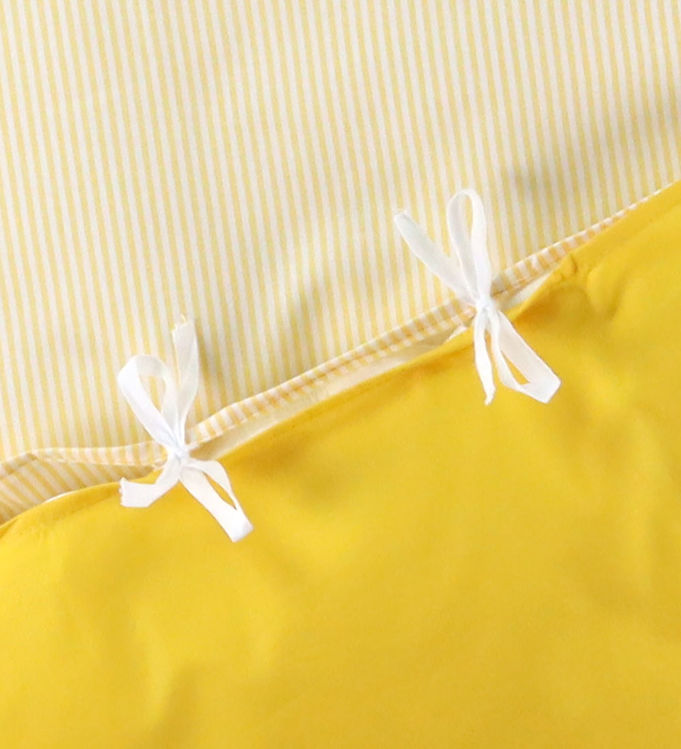 De gule striber giver et frisk pust og en legende detalje til indretningen. Denne tidløse farvekombination gør det muligt at mixe og matche med forskellige nuancer og temaer i barnets værelse. Uanset om du har valgt et maritimt tema, en sød dyreverden eller en minimalistisk skandinavisk stil, vil dette sengetøj passe perfekt ind og give et fuldendt look.