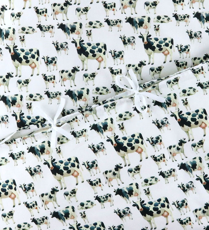 Det enkle, men alligevel legende design med de søde køer vil helt sikkert bringe glæde til både små og store. De smilende køer skaber en atmosfære af leg og fantasi og giver anledning til gode snakke om gårdens liv og naturens vidundere. Hver gang du pakker dit barn ind i dette smukke sengetøj, vil du tage dem med på en lille rejse til en idyllisk landevej, hvor det landlige stadig lever i bedste velgående. Det er ikke kun sengetøj; det er en oplevelse, en del af barndommens magiske univers.