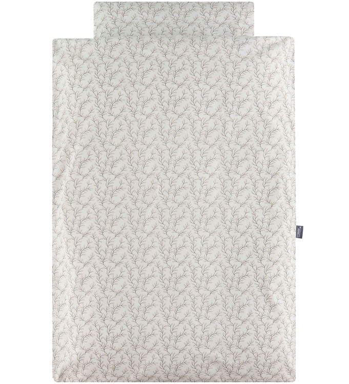 Forestil dig et soveværelse, hvor dit barn kan drømme sig bort mellem bløde lag af luksuriøs bomuld, der er økologisk fremstillet med fokus på bæredygtighed. Sengetøjets enkle, men smukke hvide grundfarve bliver oplyst af de delikate, naturfarvede grene, der elegant breder sig over stoffet. Dette design er inspireret af den danske natur og skaber en rolig og idyllisk stemning, der er perfekt til at fremme en god nattesøvn.