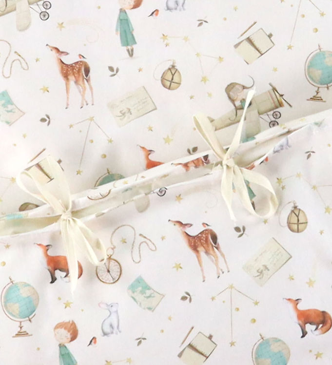 Det elegante design sikrer, at det passer ind i ethvert barnerum, og tilføjer en subtil charme uden at være overvældende. Det er en luksuriøs forvandling af det almindelige sovemiljø til et væld af læring og eventyr. Vælg Nørgaard Madsens sengetøj til baby i off white med videnskabsfolk, og giv din baby den bedste start på eventyret om søvn og læring. Lad hver nat være en rejse ud i det ukendte, hvor videnskaben danser i stjernerne og drømmene bliver til virkelighed.